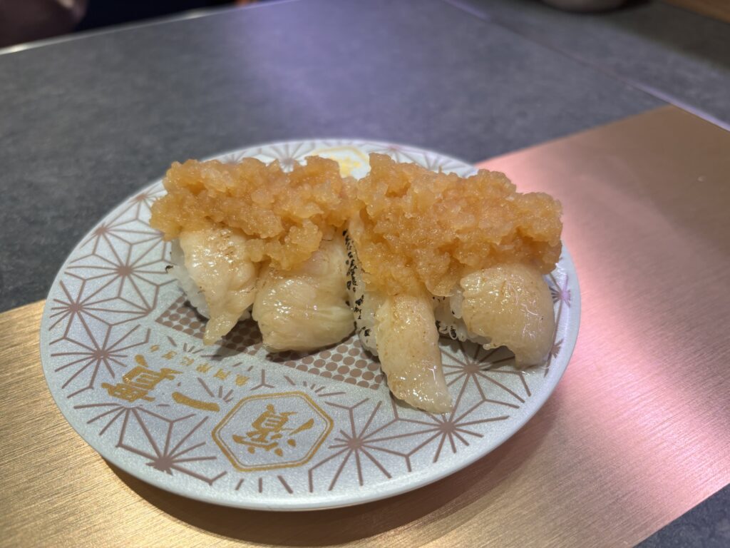 チーズソースの量がかなり多く、ネタの味よりも「全部チーズの味」になってしまいます。回転寿司によくある炙りチーズを想像している方はやめといた方がいいかもしれません。