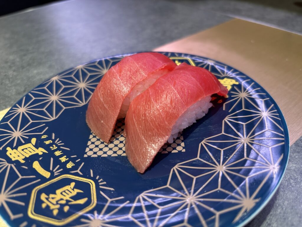 - 中トロ: クオリティに多少のバラツキがありました。「おっ、これは当たり!」という一皿もあれば、普通のものも。これが同じ中トロです…。サシの入り方が全然違うので当たりはずれがあります。