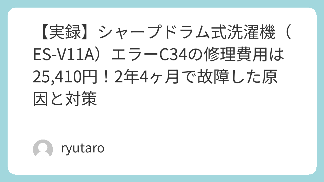 【実録】シャープドラム式洗濯機(ES-V11A)エラーC34の修理費用は25,410円!2年4ヶ月で故障した原因と対策